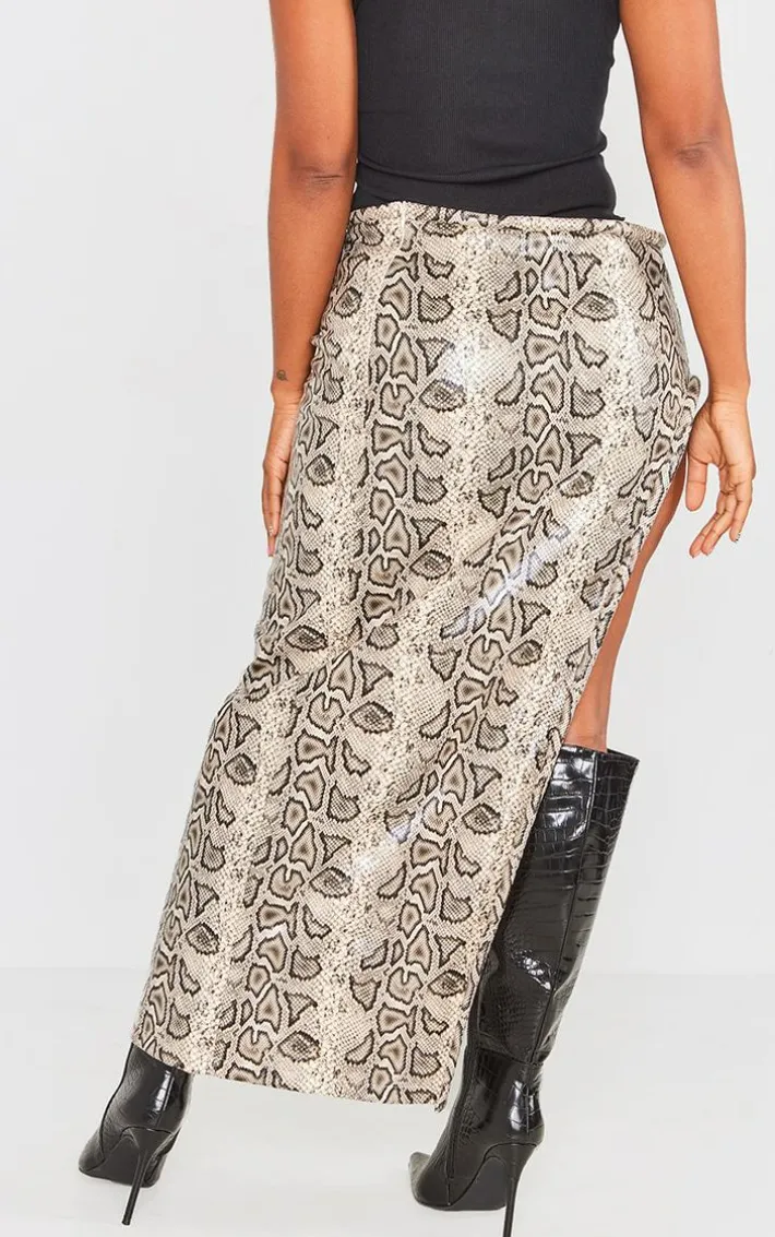 Get ready for the weekend with this shape cream faux leather snake print asymmetric midaxi skirt. Its cream faux leather material features a snake print design for a fierce vibe and an asymmetric hem for a chic touch, what more could you ask for? Perfect for those plansor a date night with someone special, this shape midaxi skirt is at the top of our hitlist. Style effortlessly with a black top and knee-high boots for a look that won’t go unnoticed.
