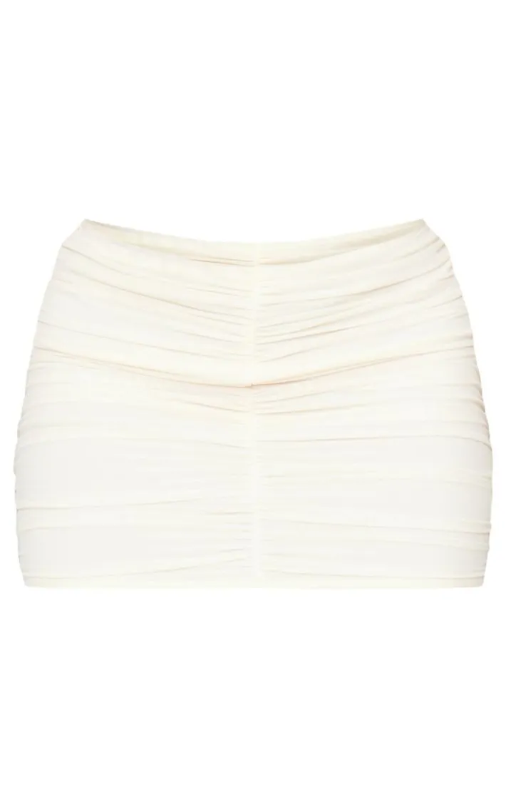 Add a touch of chic to your collection with this shape cream ruched mini skirt. Brought to you in a neutral cream hue, with a ruched design and mini style, this skirt was made to be seen. It pairs perfectly with the matching top and a set of strappy heels for a look like no other.