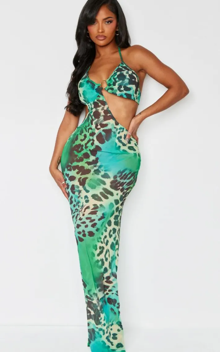 Make them stop and stare in this shape green animal printed chiffon ring detail maxi dress. Brought to you in a green hue chiffon material with an animal print design, ring detailing and a figure-hugging maxi fit, we are obsessed. Style this maxi dress with heels and accessories for a look that won’t go unnoticed.