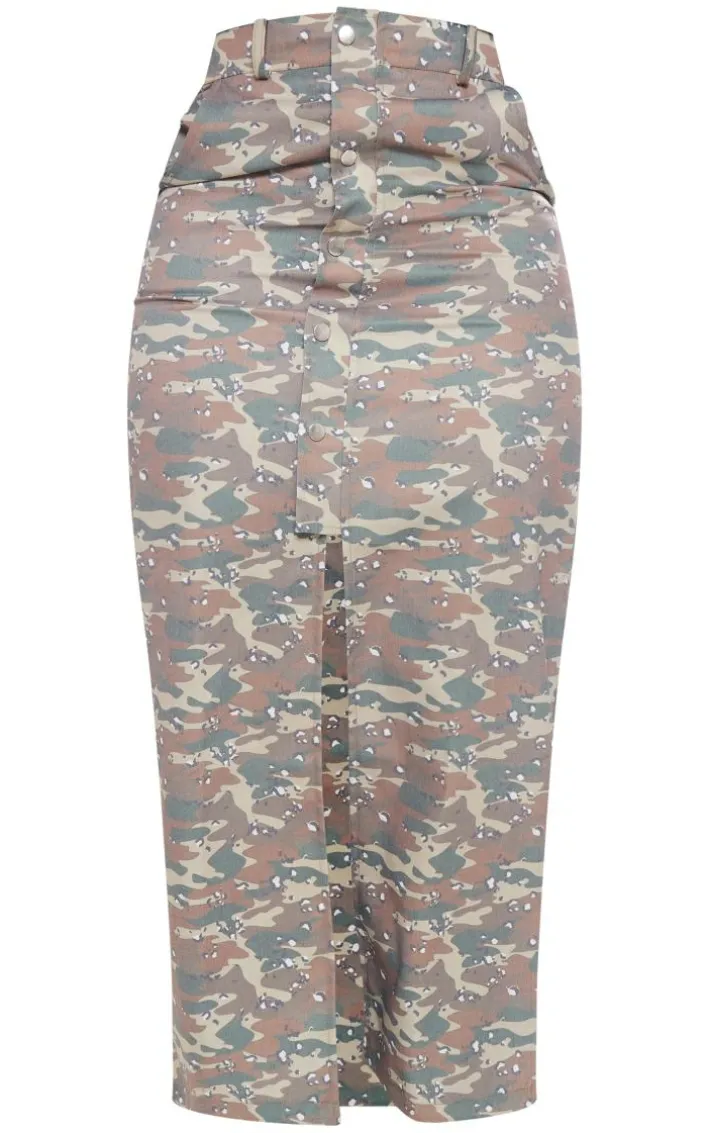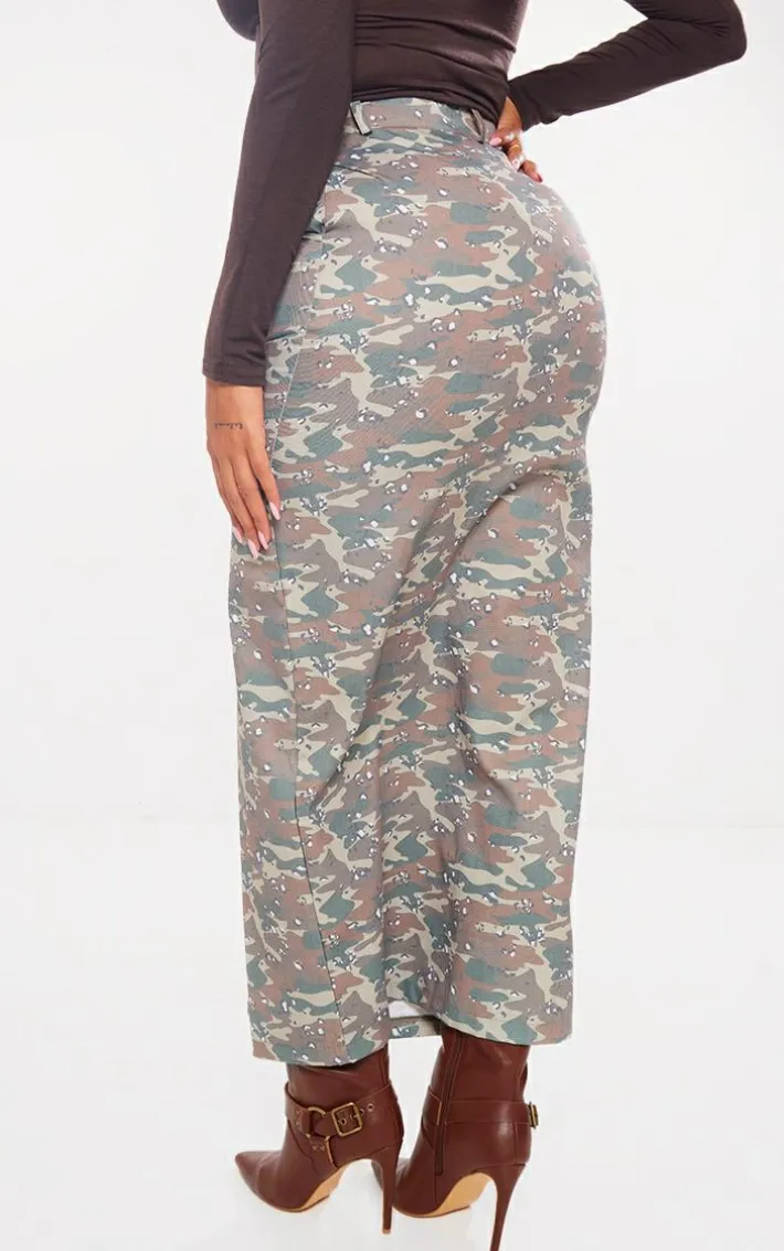 The weekend is calling and this shape green camo button detail cargo maxi skirt is everything you’re looking for and more. Sure to nail the dress code, this shape maxi skirt ticks all the boxes. With a green camo material, button detailing and a split hem, how could you not be in love? Style seamlessly with a figure-hugging top, knee-high boots and gold accessories for a luxe finish.Â