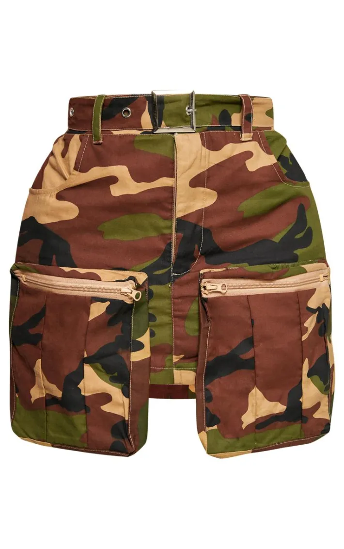 Inject some statement prints into your weekend wardrobe with this shape green camo print pocket detail mini skirt. Brought to you in a green material with a camo print design, pocket detailing and a mini fit, how can you say no? Style this mini skirt with a crop top, heels and accessories for a look that is sure to make you stand out from the rest.
