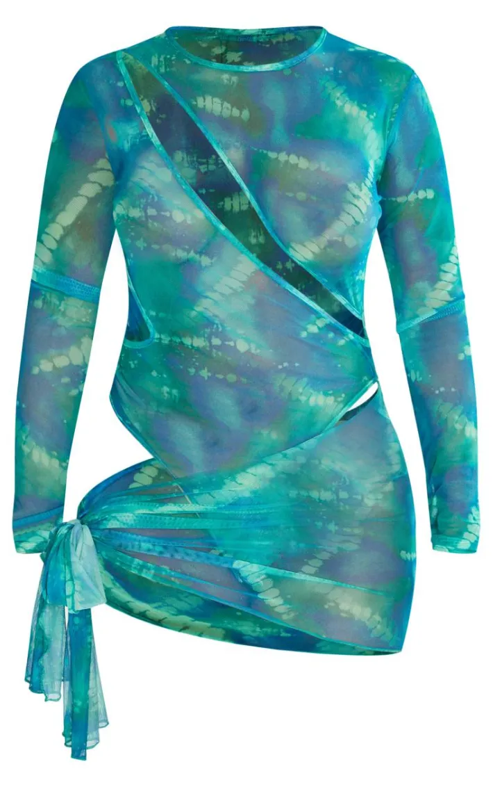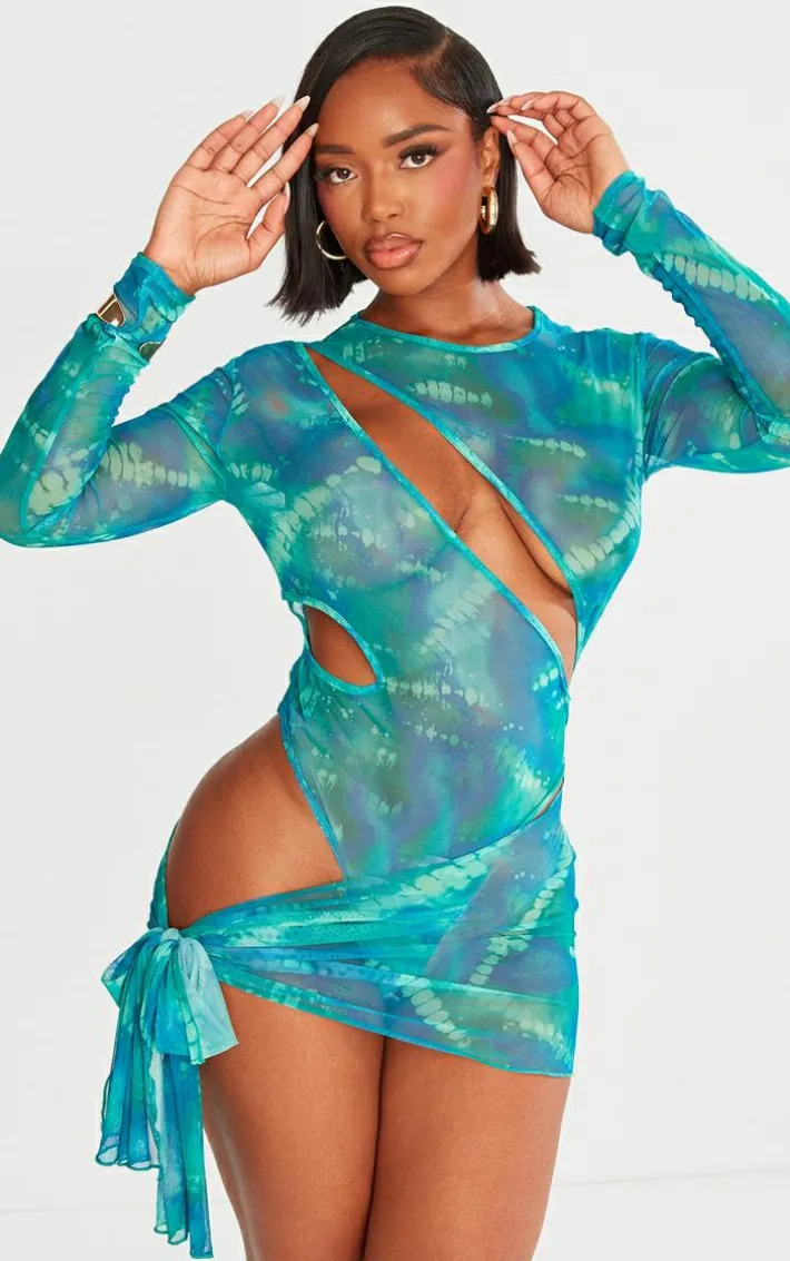 Make a statement this weekend in this shape green printed mesh cut out bodysuit detail bodycon dress. Brought to you in a green printed mesh material with a dramatic cut out design, bodysuit detailing and long sleeves, we are obsessed. In a flattering bodycon fit, you are sure to make heads turn in this shape dress. Just add heels and gold accessories to elevate the look.