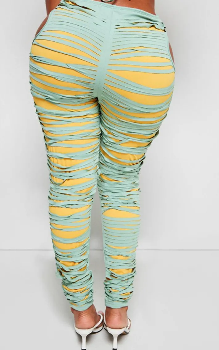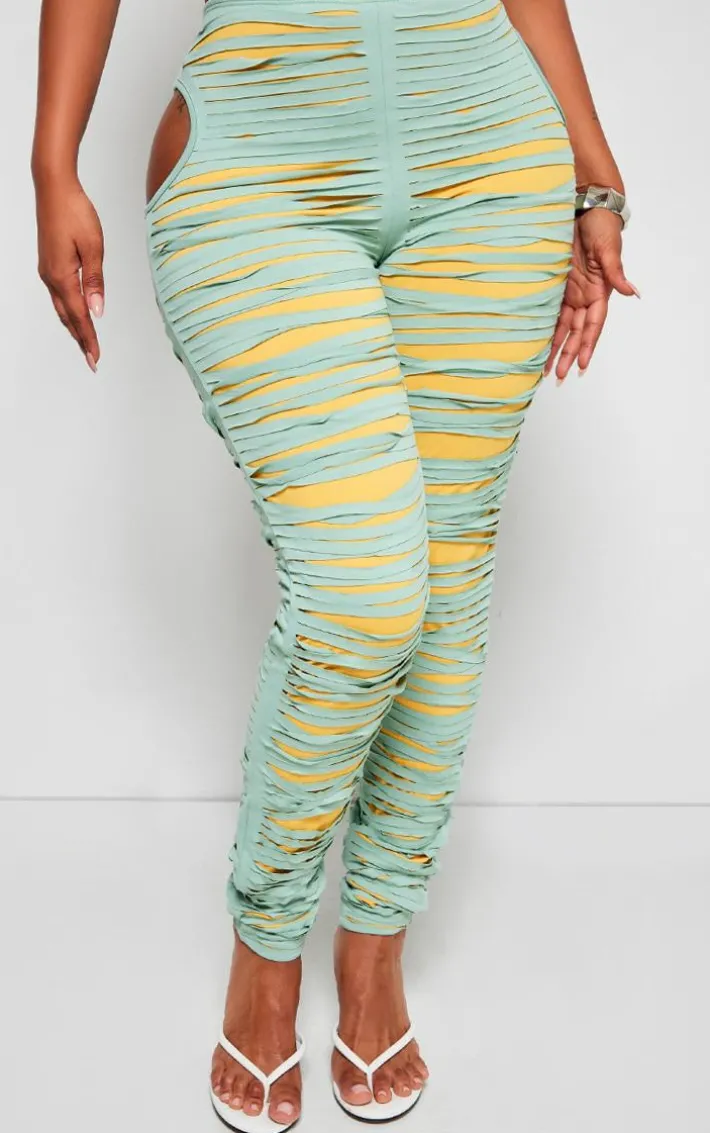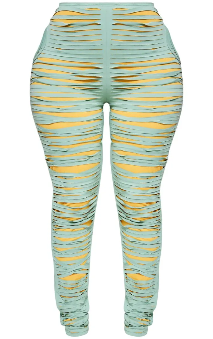 Turn heads for all the right reasons in these shape green seamless shredded detail skinny pants. Brought to you in a green seamless material with a shredded detail, these skinny fit pants are calling your name. Style with the matching top, clear heels and gold accessories to steal all the stares this season.