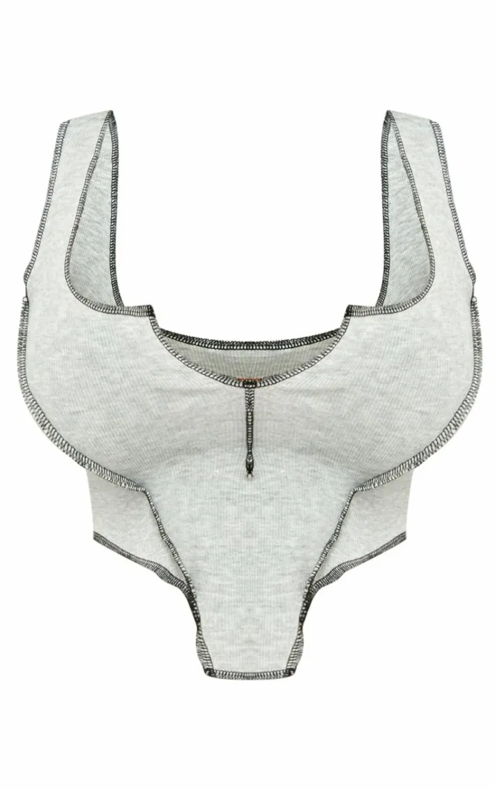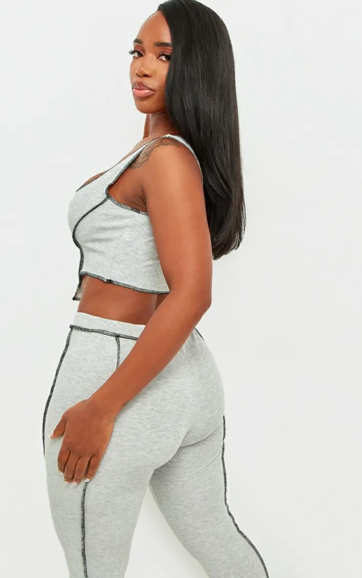 When the weekend calls, so does this shape grey marl contrast stitch ribbed crop top. Brought to you in a grey marl material with a contrast stitch and a ribbed design, what’s not to love? Its cropped length is sure to turn heads for all the right reasons. Team with the matching leggings and your fave heels for a look like no other.
