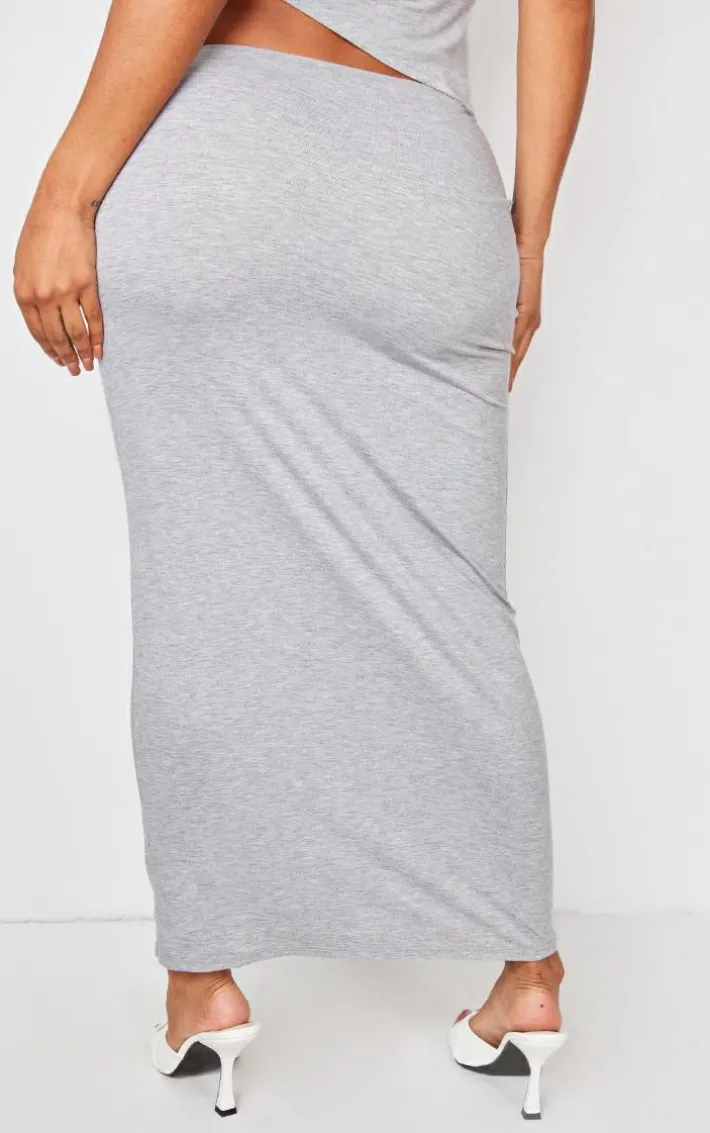 Set major trends this season with this shape grey marl jersey asymmetric waist maxi skirt. Brought to you in a grey marl jersey material with an asymmetric waist, what more could you want ? Its maxi length will have you feeling effortlessly chic all season long. Team with your fave accessories and the matching top for a fool proof finish we are obsessing over.