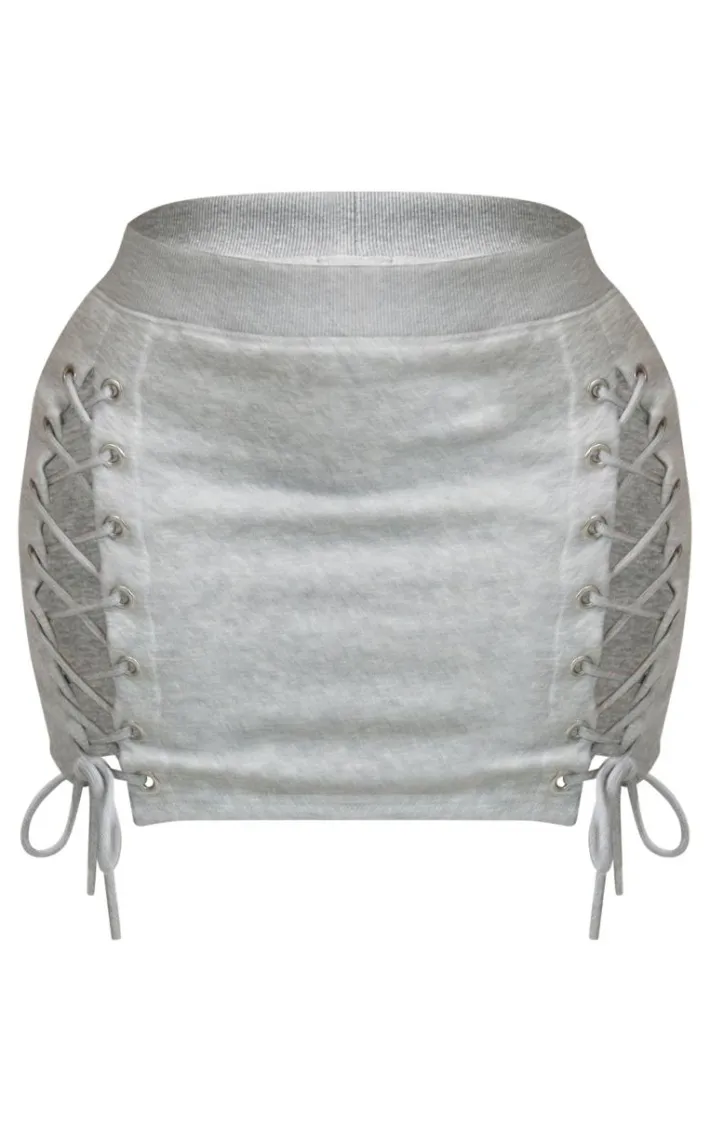 Your wardrobe is calling out for this shape grey marl sweat lace up side mini skirt for your new season look. Brought to you in a grey marl material with a lace up side, how could you resist? Team this mini skirt with the matching crop top and a pair of heels for a weekend-worthy finish.