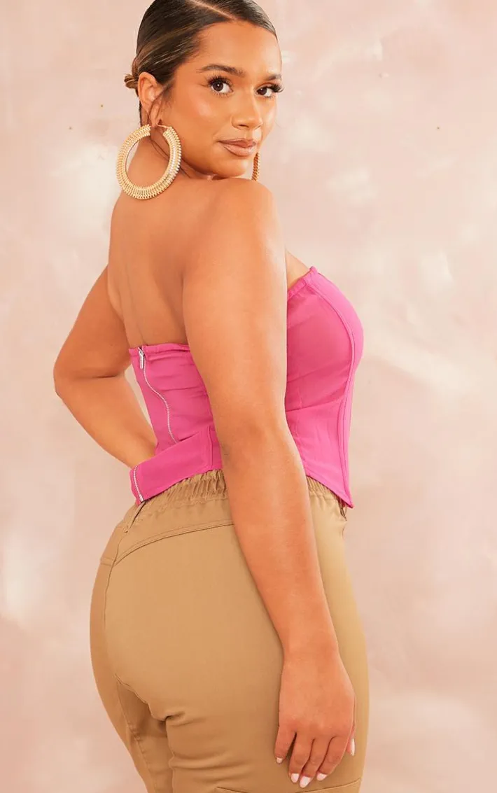 Add a pop of pink to your weekend look with this statement shape hot pink mesh boned corset. Brought to you in a hot pink hue mesh material that is sure to make you stand out from the crowd and featuring a figure-worshipping boned corset fit, we just can’t get enough. Style this shape corset with cargo pants, clear strpa heels and gold accessories for a look that is perfect for your next date with the dolls.