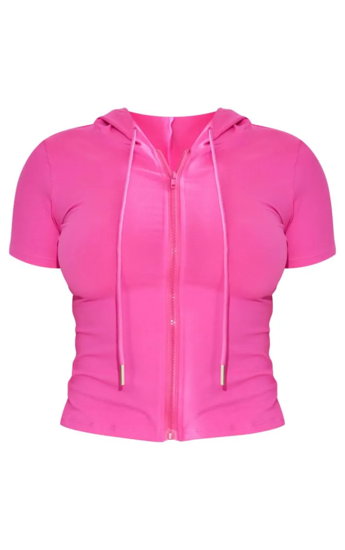Turn heads in this shape hot pink sculpted short sleeve hooded jacket. Brought to you in a hot pink hue sculpted material with short sleeves, a zip up fastening and a hood, what’s not to love? Team this hooded jacket with the matching shorts and statement accessories for a look that can be dressed up or down to suit your plans.