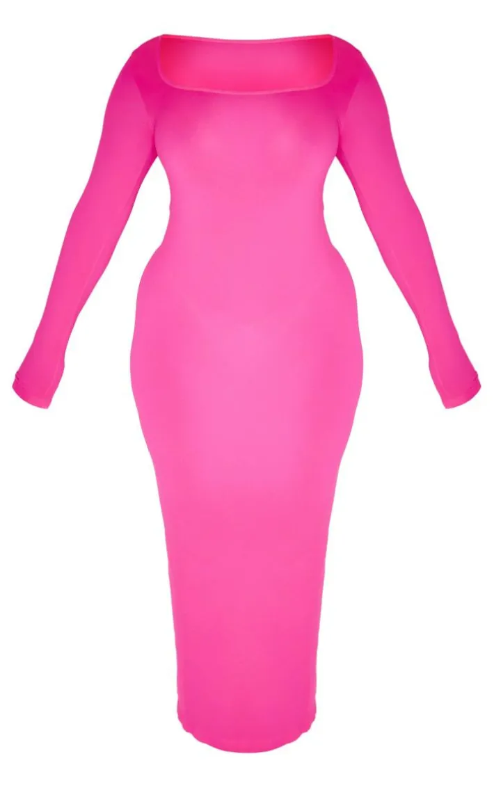 Be sure to stand out from the crowd in this shape hot pink stretch seamless long sleeve maxi dress. Brought to you in a hot pink hue seamless stretch material with long sleeves and a maxi length, we just canÂ’t get enough. ItÂ’s seriously figure-hugging fit that is sure to show off your shape in all the right place. Style this shape maxi dress with statement accessories and heels for a weekend-worthy look that will gain all the compliments.