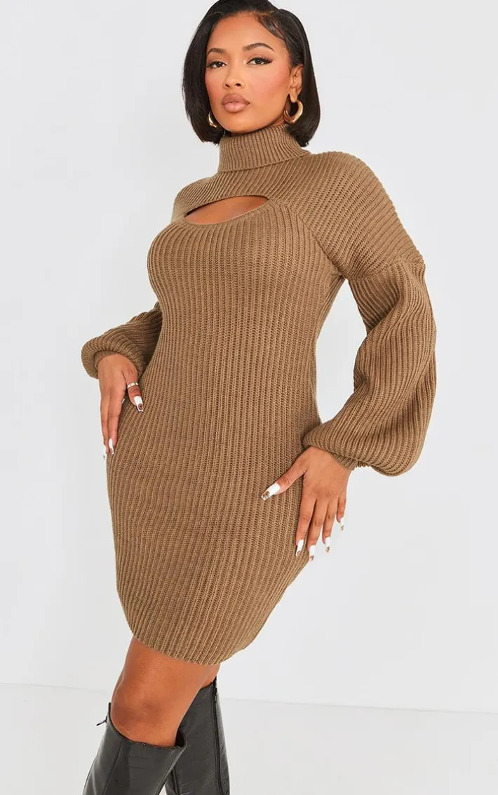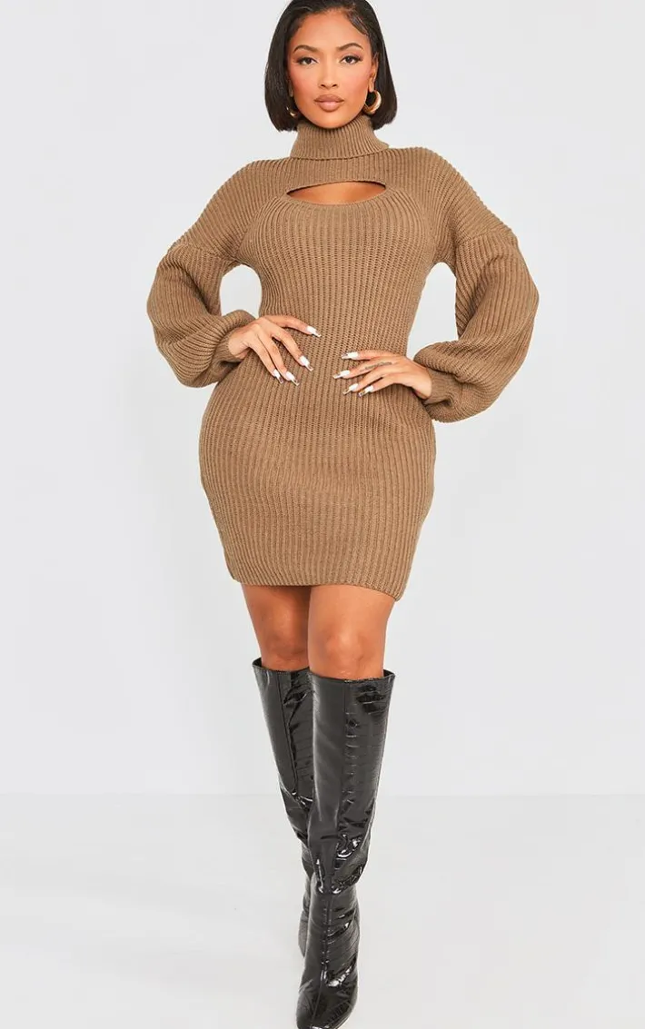 Take any look to new heights with this 2 in 1 high neck balloon sleeve bodycon sweater dress. Brought to you in a khaki material with a high neck design and a balloon sleeve detailing, what’s not to love? Its bodycon fit is all you need to feel confident this season and beyond. Team with some knee high boots and a pair of gold chunky hoops to finish off this effortlessly chic look.