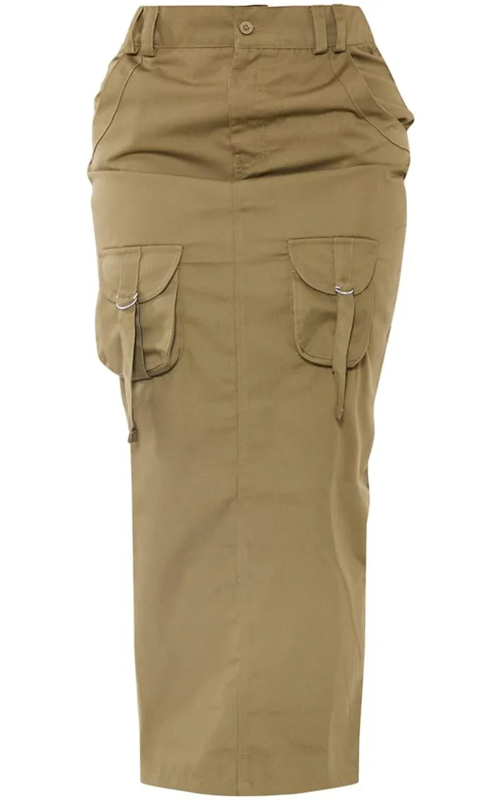 Get ready to nail the cargo trend everybody is talking about with this shape khaki pocket detail cargo midaxi skirt. Brought to you in a khaki hue material with pocket detailing, a cargo design and a midaxi fit, what more could you need? Style this shape skirt with a flattering corset top and heels for a fierce weekend-worthy ‘fit, or why not add sneakers for more of an everyday vibe? You really can’t go wrong.
