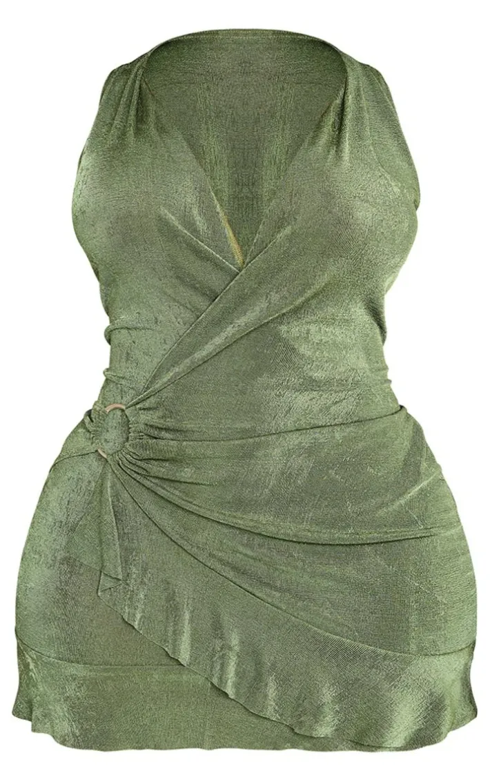 We’re obsessed with this shape khaki slinky acetate ring wrap detail mini dress for your weekend wardrobe. Made from a khaki slinky acetate material with ring detail and a wrap design, you are sure to steal all the stares with this mini dress. Whether you have plansor a date night in the diary, this shape mini dress ticks all the boxes. Team with lace-up heels and a shoulder bag for a look that everyone will want.