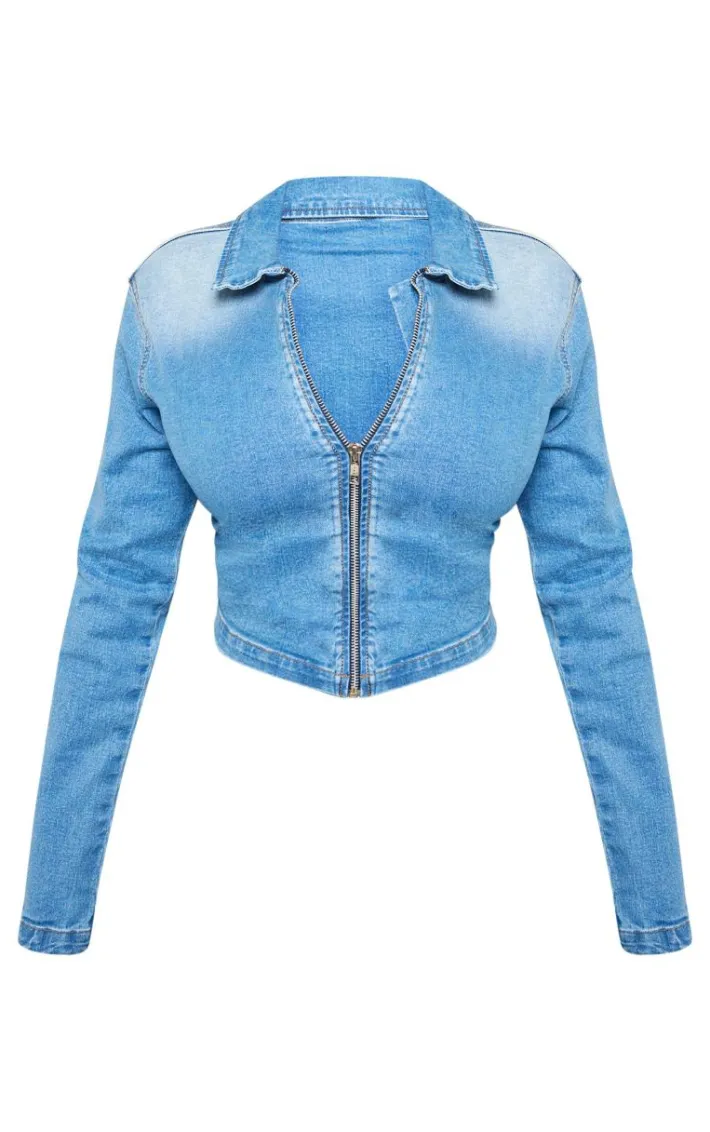 Say hello to your new season staple with this shape light blue denim cropped zip through jacket. Brought to you in a light blue denim material with a cropped length and a zip through design, what more could you want? This unreal shape jacket will be showing off your shape in all the right places. What more could you want ? Style with some heels, gold hoops and the your fave jeans for a look that has you being the topic of everyone’s conversation.