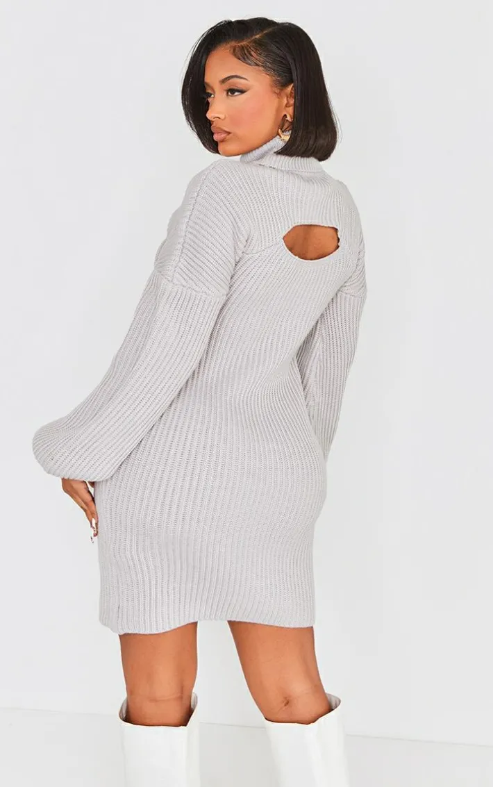 Give your new season wardrobe the chic upgrade it deserves with this shape light grey 2 in 1 high neck balloon sleeve bodycon sweater dress, we’re seriously in love. This bodycon dress features a light grey material with balloon sleeves and a relaxed fit, you’re sure to be nailing major trends. Style it with knee high heeled boots and gold hoop earrings for a flawless finish.