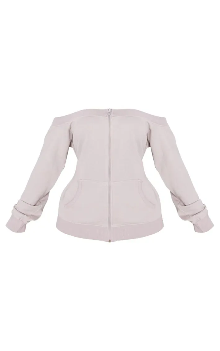 Meet your new season wardrobe essential with this shape light grey washed bardot zip up sweatshirt, it is perfect for those chilled days and beyond. Brought to you in a light grey washed material with a zip up design and a bardot style, this sweatshirt just went straight to the top of your hit list. Pair it with the matching bottoms, chunky sneakers and your fave accessories for a chic, off-duty vibe.