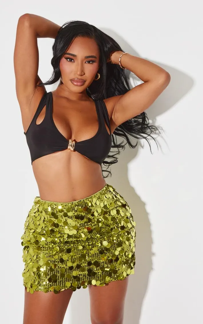 Have all eyes on you in this shape lime disc sequin mini skirt. Its shimmery lime disc sequins will add a touch of sparkle to your ‘fit, and its figure-hugging shape will show off your best features. Team with a bralet top, strappy heels and some wrist bangles to own the moment. What are you waiting for?