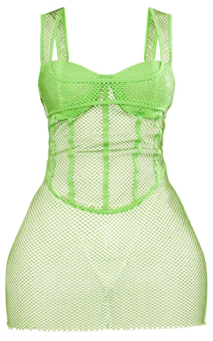Turn heads for all the right reasons this weekend with this shape lime glitter fishnet cup detail bodycon dress. Brought to you in a lime glitter fishnet material with cup detail and a plunging neckline, how could you say no? If you’re wanting to stand out from the crowd this weekend then you need this shape bodycon dress. Add an extra glam touch with clear heels and gold accessories.