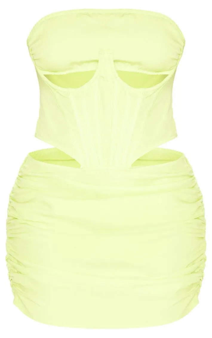 This shape lime woven cut out corset detail bodycon dress is all you need to tap into your fiercely feminine side this season. Brought to you in a lime woven and material with a cut out corset detail that will have heart racing wherever you step foot. Its bodycon fit will have you feeling confident no matter what. Just add a pair of heels and gold accessories to complete the look that everyone will be talking about.