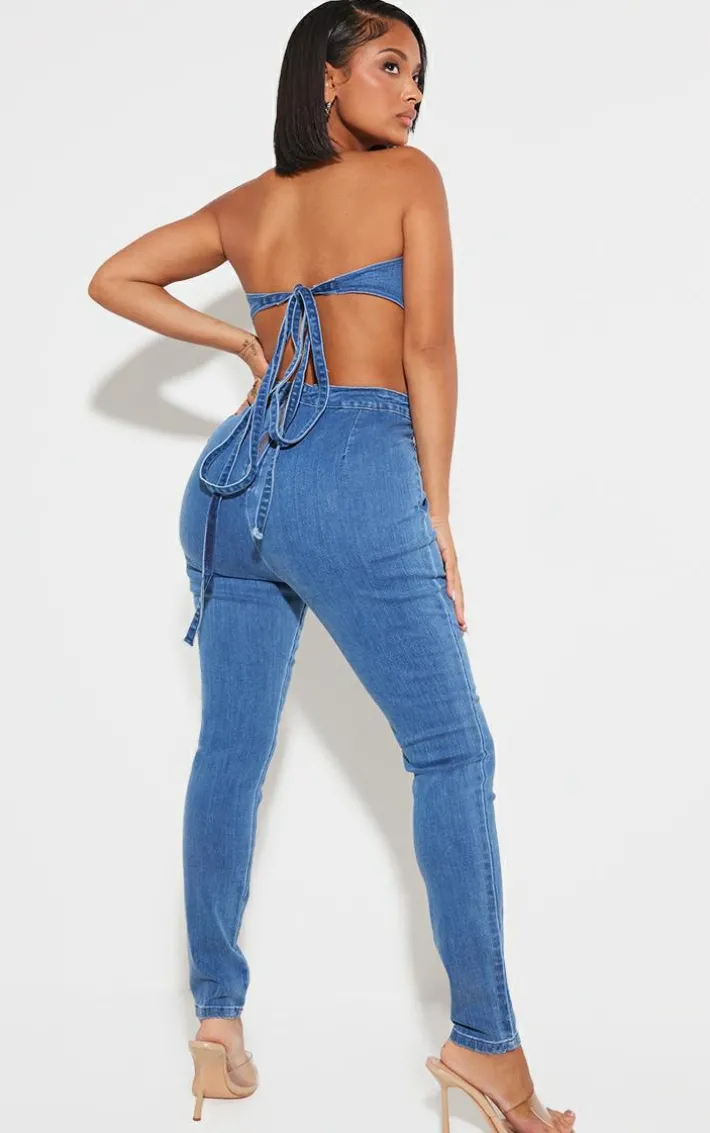 This must-have jumpsuit is sure to give your style some extra edge. Featuring a mid blue washed denim material with cup detailing, a tie back fastening and a flattering fit, we are in love. Simply pair this with high heels and accessories for a vibe that will get you noticed.