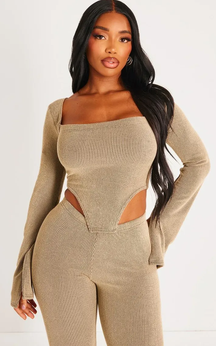 Make room in your new season wardrobe with this shape mocha ribbed bardot flare split sleeve crop top, we’re seriously obsessed. It is made using a mocha ribbed material with flared split sleeves and a figure-flattering fit, this top just went straight to the top of your hit list. Just add the matching leggings, heels and your fave accessories for a flawless finish.