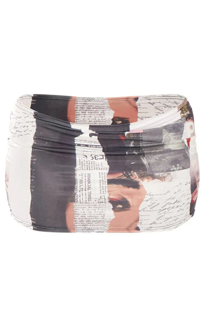 Have all eyes on you with this shape multi slinky newspaper print micro mini skirt. This mini skirt is brought to you in a mutli slinky newspaper print material with a micro mini length and a figure-flattering fit, how could you resist this? When the weekend calls so does this mini skirt. Wear with the matching top, clear high heels and accessories for a look like no other.