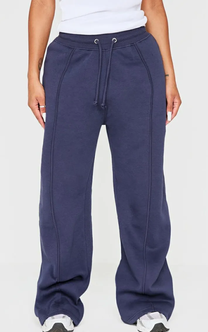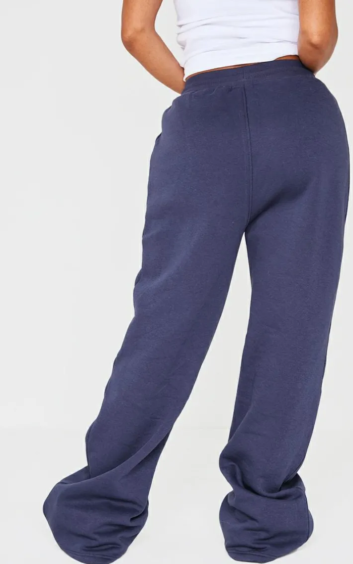 Keep it comfy in these shape navy binded high waist wide leg sweatpants. Brought to you in a navy material with a bunded design and a high waist fit, these wide leg sweatpants are a must have in your off-duty wardrobe. Team with a basic tee and your fave hoodie for a look we are loving.