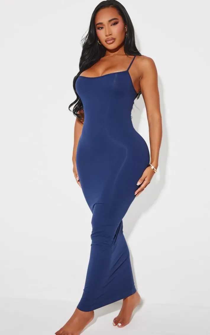 This shape navy stretch seamless strappy maxi dress will earn you best dressed at any occasion. Brought to you in a dreamy navy shade, with a stretch seamless design for a figure-flattering finish and strappy detailing, how can you resist? Style with your fave sandals and gold accessories for a complete look.