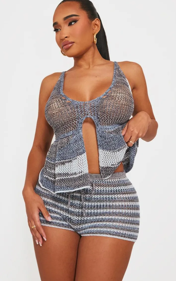 Take your new season wardrobe that extra mile with this shape navy stripe knit halterneck tie front top, you’re sure to be earning all the compliments. This shape top features a navy stripe knit material with a tie front design and a halterneck style, we’re in love. Pair with the matching shorts, heels and simple accessories for a fierce finish.