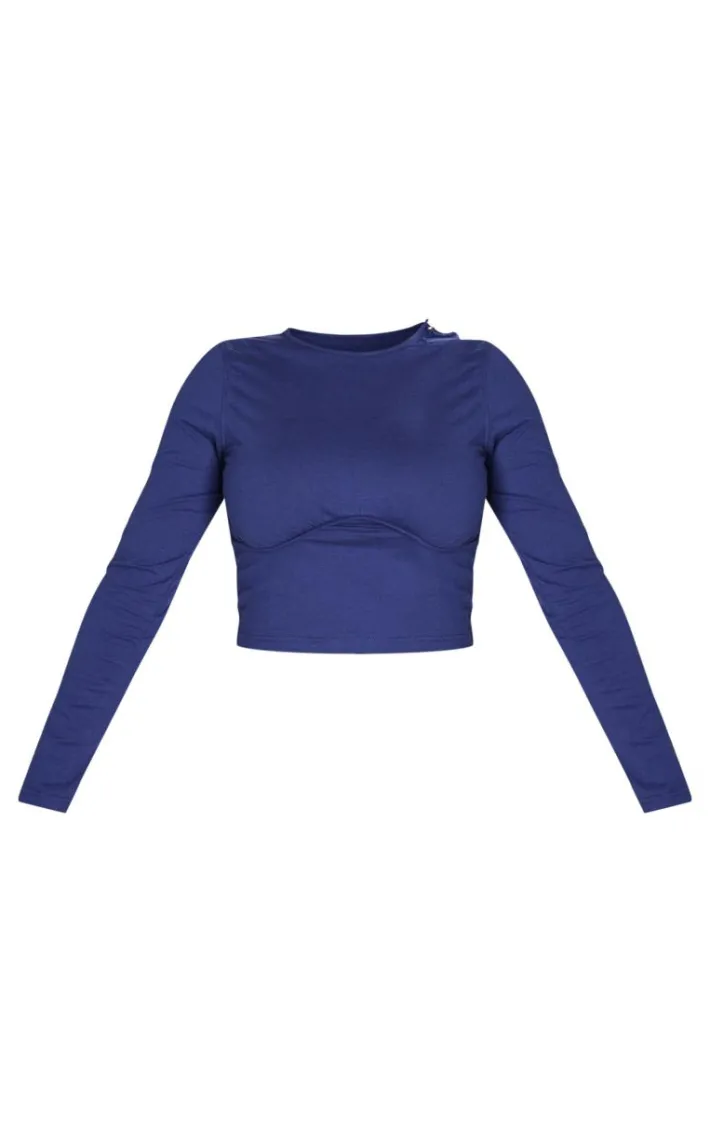 Hit refresh on your new season wardrobe with this shape navy underbust long sleeve top, it is perfect for dressing up or down. This shape top features a navy material with an underbust design and long sleeves, what more could you want? Team this shape top with the matching sweatpants, heels and your fave accessories for a fool proof finish.