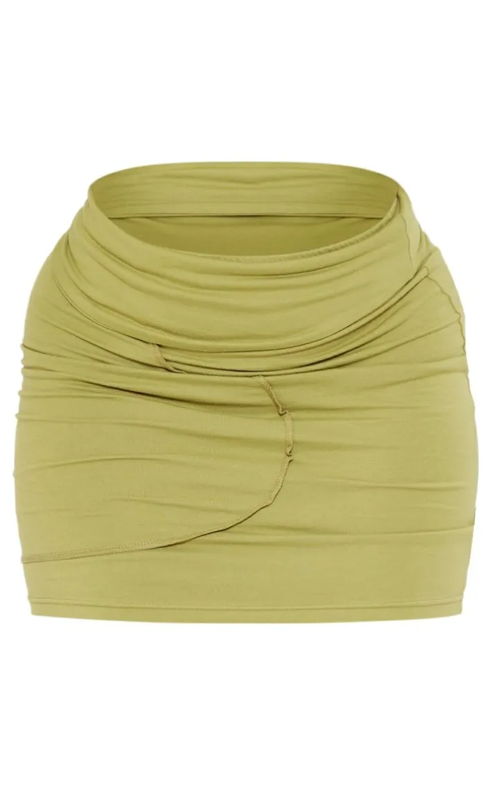 Take your weekend look to a whole new level with this shape olive seam detail foldover mini skirt. Brought to you in an olive hue material with a foldover design, seam detailing and a mini fit, how can you resist? We are loving this mini skirt styled with the matching top, clear strap heels and gold accessories for a look that is sure to have eyes on you all night long.