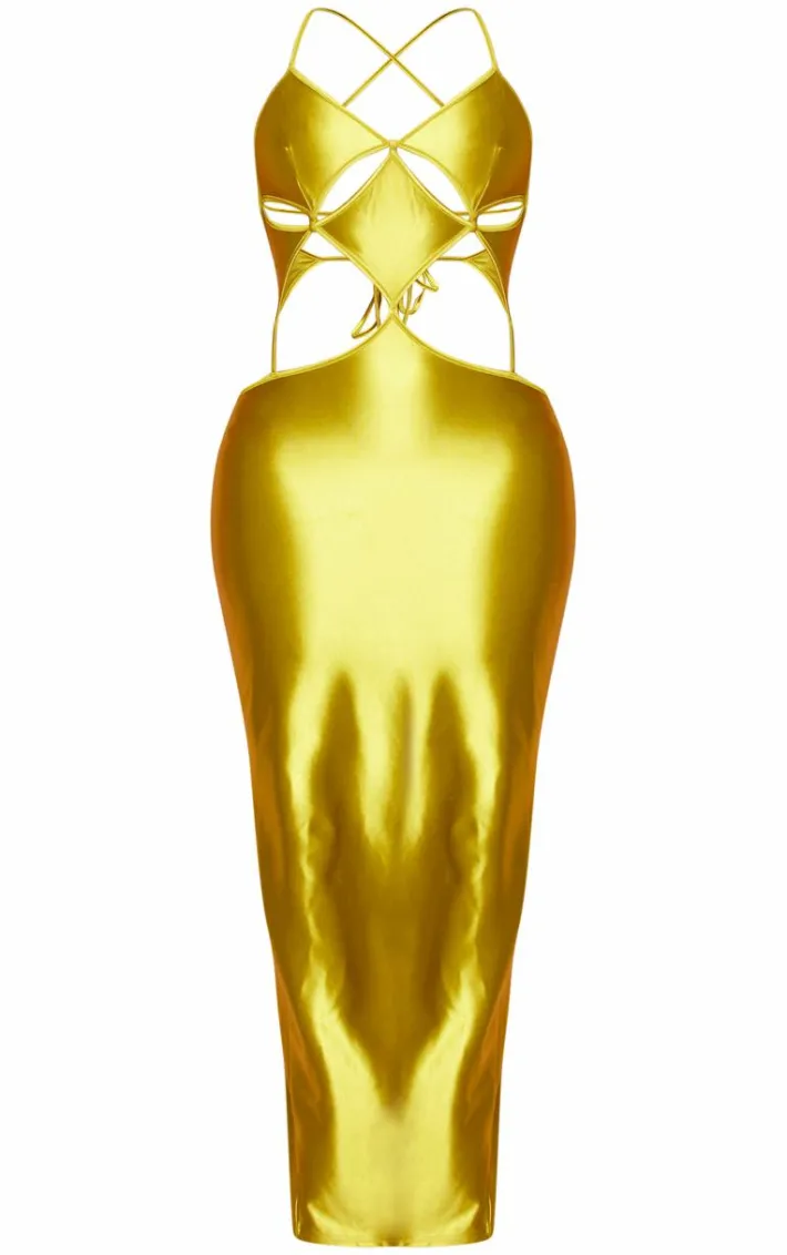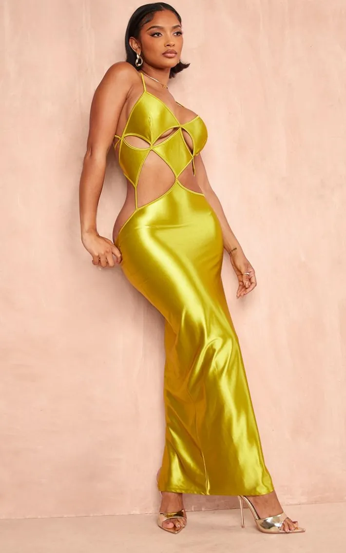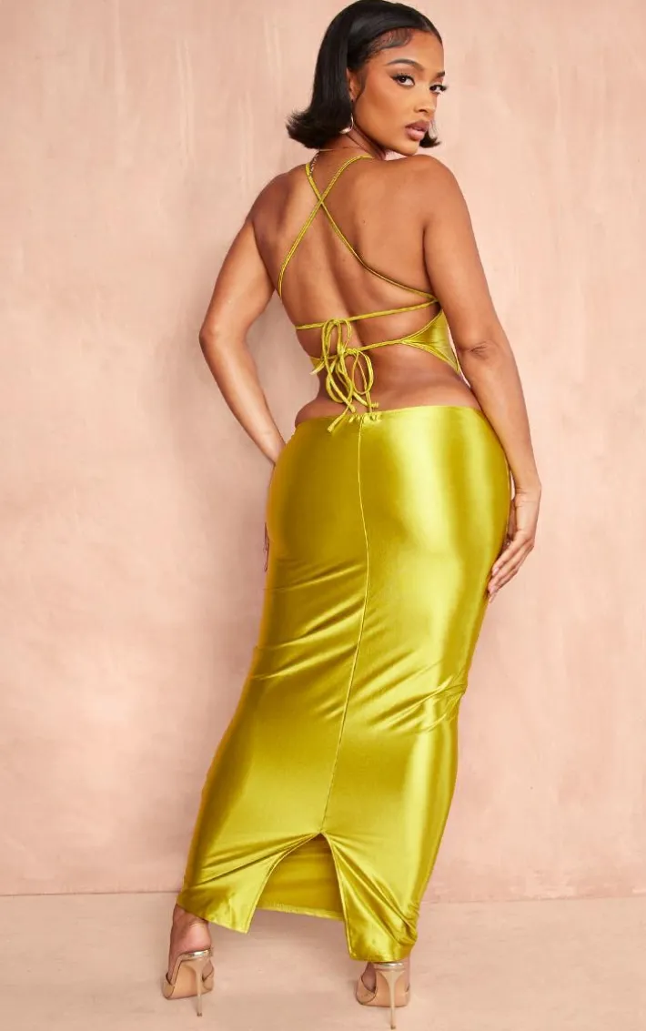 Get ready for all your weekend plans with this statement shape olive stretch satin cut out detail midaxi dress, we’re obsessed. This shape dress features an olive stretch satin material with a cut out design and a midaxi length, how could you resist? Pair this satin dress with your go to heels and simple accessories for a look we just can’t get enough of.