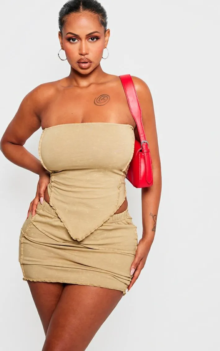 You won’t have to sacrifice comfort for style with this shape olive washed cotton seam lettuce hem skirt. Brought to you in a olive washed cotton material with a lettuce hem design and seam detailing, what’s not to love? Style this cotton skirt with the matching top and heeled boots for a look that will really make a statement this weekend.