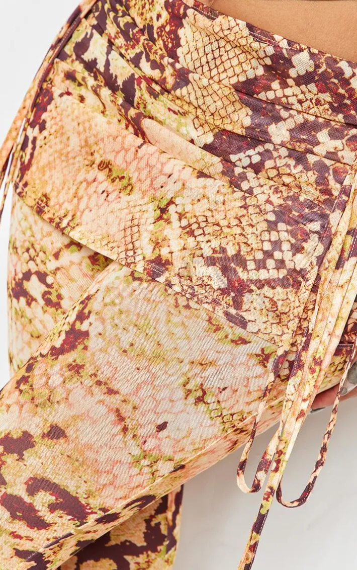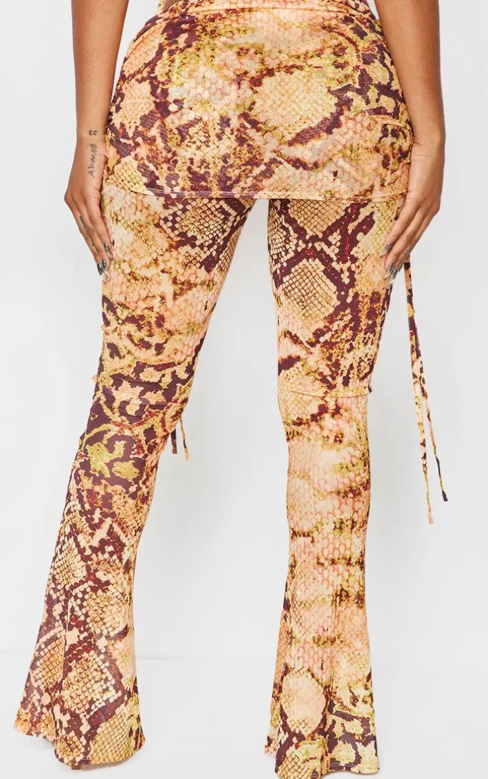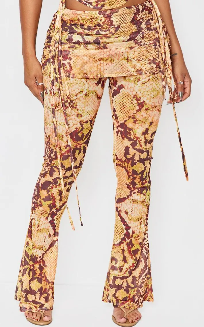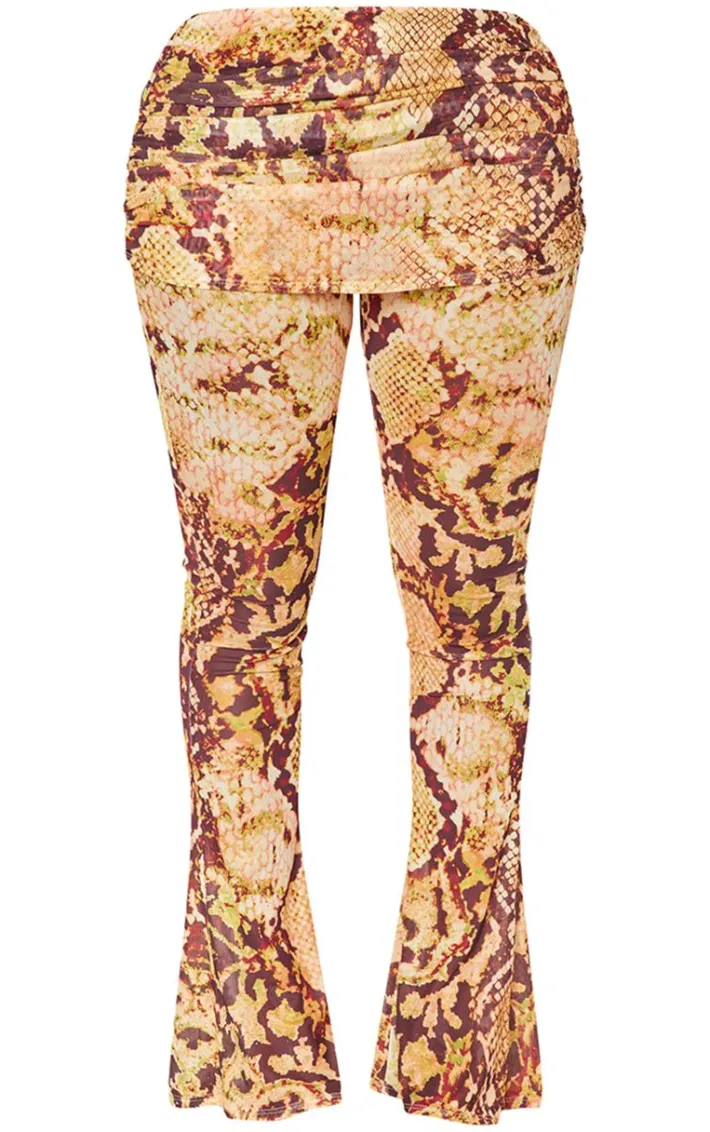Inject some fierce animal prints into your weekend look with these shape orange animal printed mesh foldover ruched waist flare pants. Brought to you ina n orange hue mesh material with an animal print design, a foldover waist and a flattering flared leg fit, how can you resist? Pair these printed pants with the matching top and heels for a look that is sure to have all eyes on you.