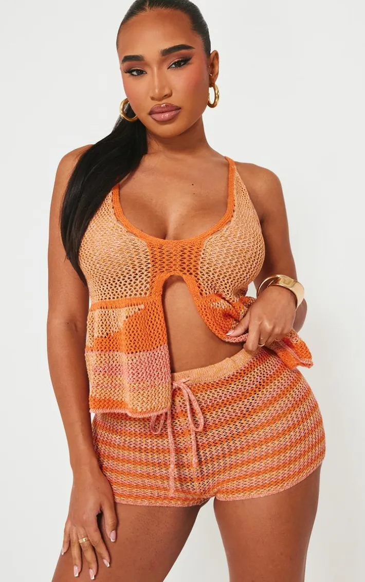 Take the stress out of weekend styling with these shape orange stripe knit hot pants. Brought to you in an orange knit material with a stripe design, you really can’t go wrong with these unreal hot pants. Style with clear strap heels and the matching top for a look that will have eyes on you for all the right reasons.