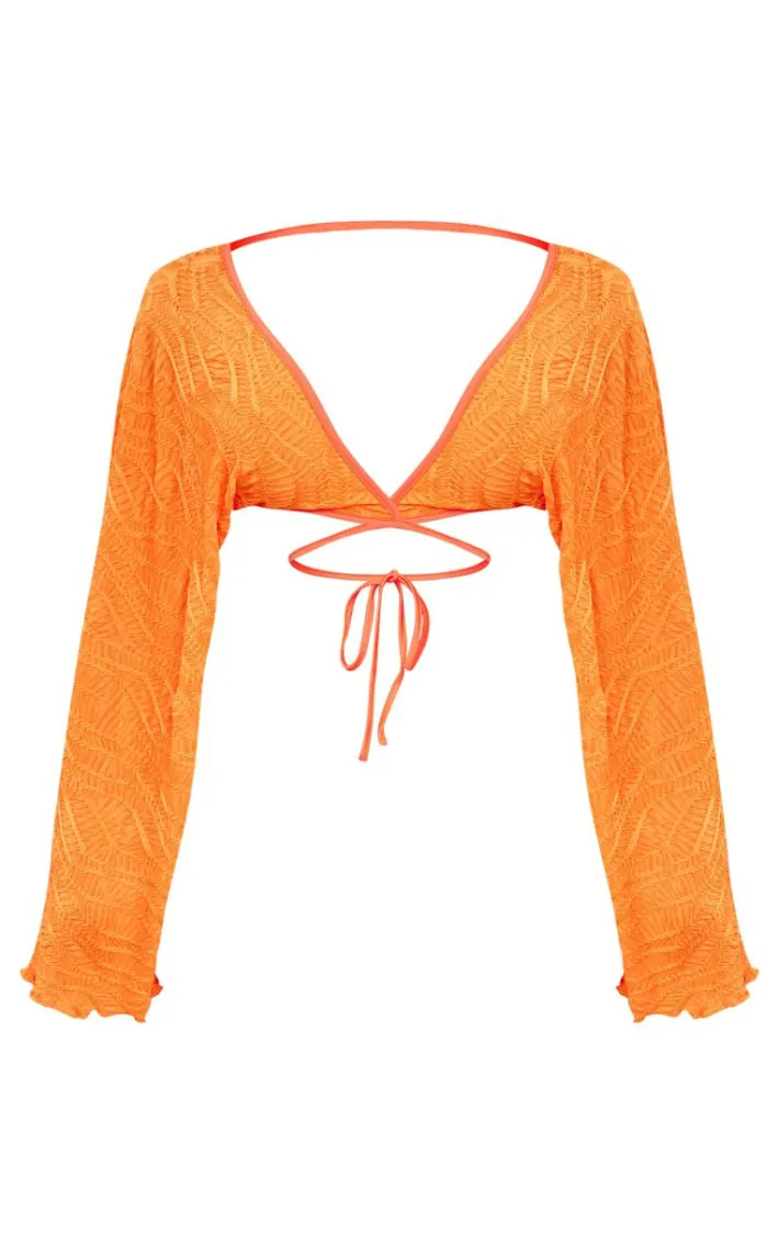 Make a statement in this shape orange textured tie front long sleeve top. Brought to you in an orange hue textured material with long sleeves and tie front detailing, what more could you want? Style this shape top with the matching skirt, heels and gold accessories for a weekend-worthy look that won’t go unnoticed.