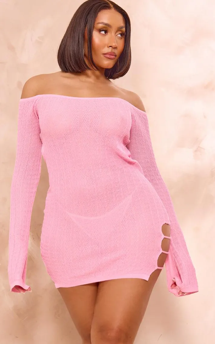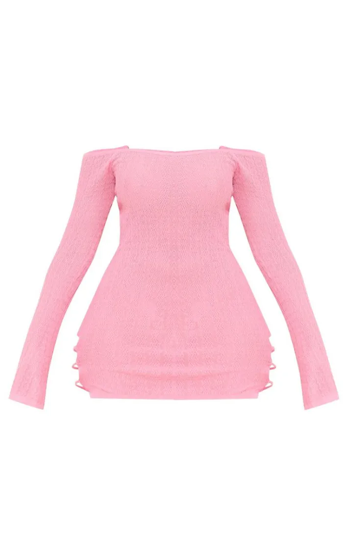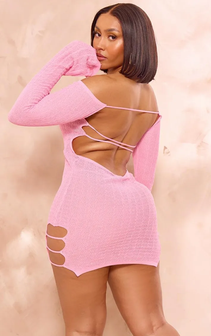 Have heads turning for all the right reasons with this dreamy shape pink knit sheer cut out long sleeve bodycon dress. Made using a pink sheer knit material with a cut out design and a figure-worshipping fit, you’re sure to be feeling your most confident in this shape dress. Style with your highest heels and simple accessories for a fierce finish.