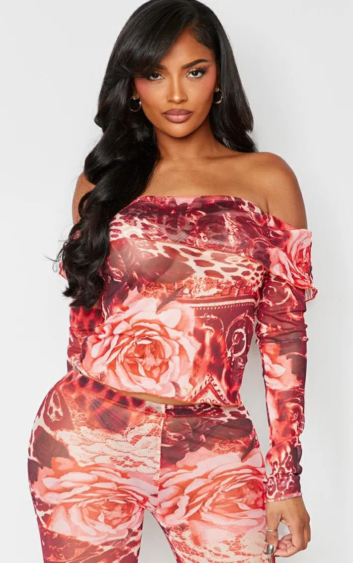 Add a pop of pink into your look with this shape pink printed mesh bardot foldover top. This foldover top is brought to you in a pink printed mesh material with a bardot design, what’s not to love? This top is perfect for your next date night. Style this with the matching bottoms, high heels and accessories for a look like no other.
