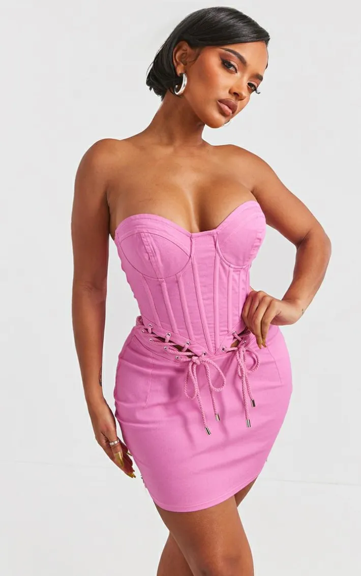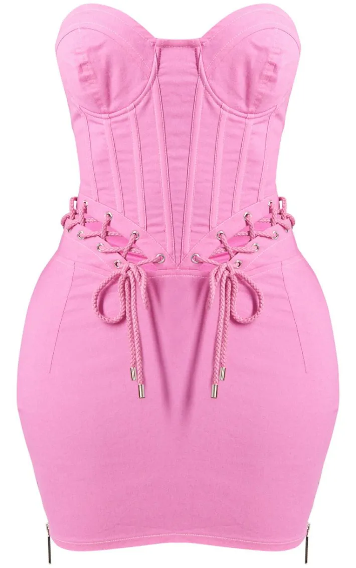 Stand out from the crowd for all the right reasons in this shape hot pink rope detail lace up corset bodycon dress. Brought to you in a hot pink hue material with a lace hup design, rose detailing and a figure-hugging corset fit, how can you not fall in love? Style this bodycon dress withclear strap heels and gold accessories for a look we just can’t get enough of.