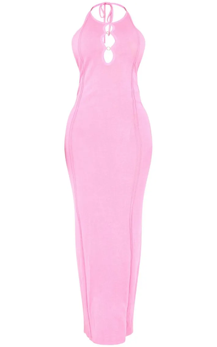 Have all eyes on you with this shape hot pink sheer knitted low back ring detail maxi dress. This maxi dress is brought to you in a hot pink sheer knit material with a low back and a ring detail, how could you turn this down? This maxi dress is calling your name. To finish off the look style this with high heels and a mini clutch bag for a flawless finish.