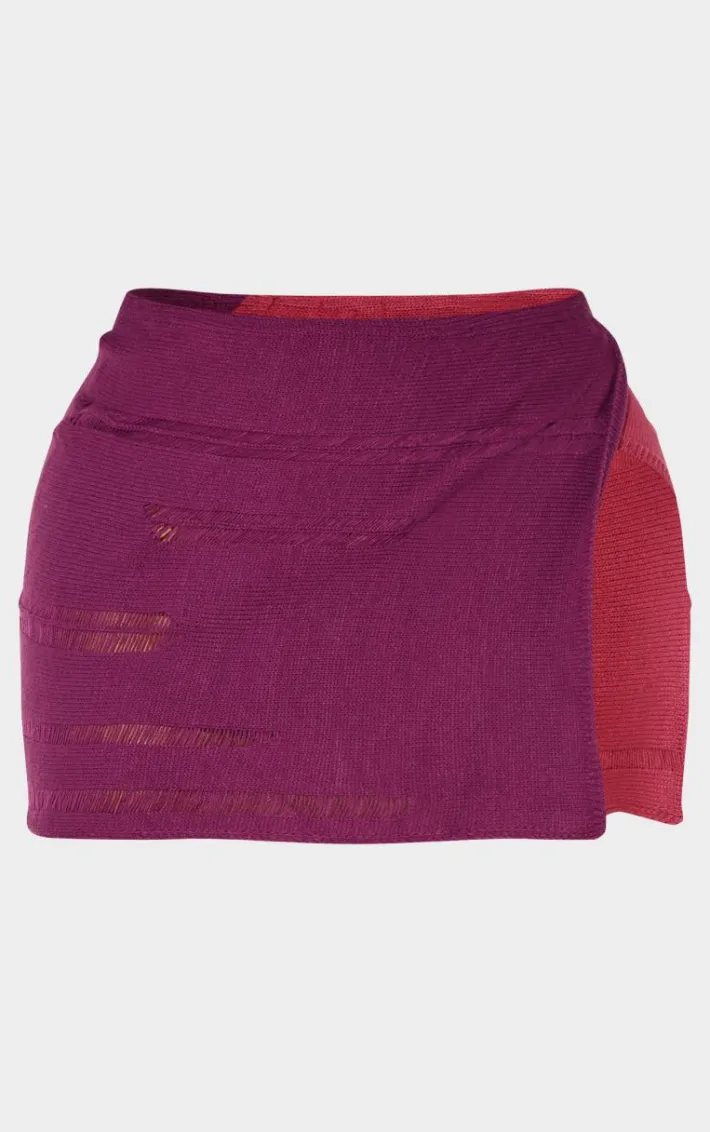 Take your weekend look to new heights with this shape plum contrast knitted skirt. Brought to you in a plum hue knit material with a contrasting design and side split detailing, how can you resist? Pair this knitted skirt with the matching top, heels and accessories for a look worthy of your weekend plans.