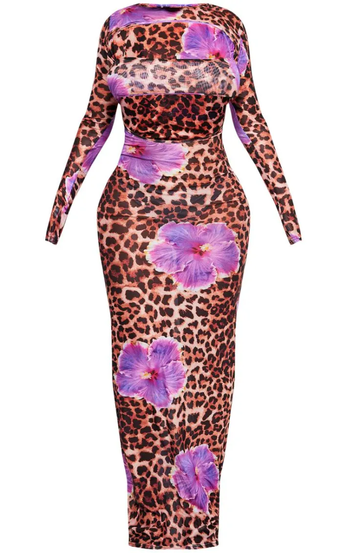 You need this shape purple leopard printed mesh open back maxi dress in your wardrobe. Brought to you in a purple mesh material with a leopard printed design and an open back detail, what’s not to love? This unreal maxi dress is perfect for those nights out. Shop the look and add some heels and your fave accessories for a vibe that everyone will want.