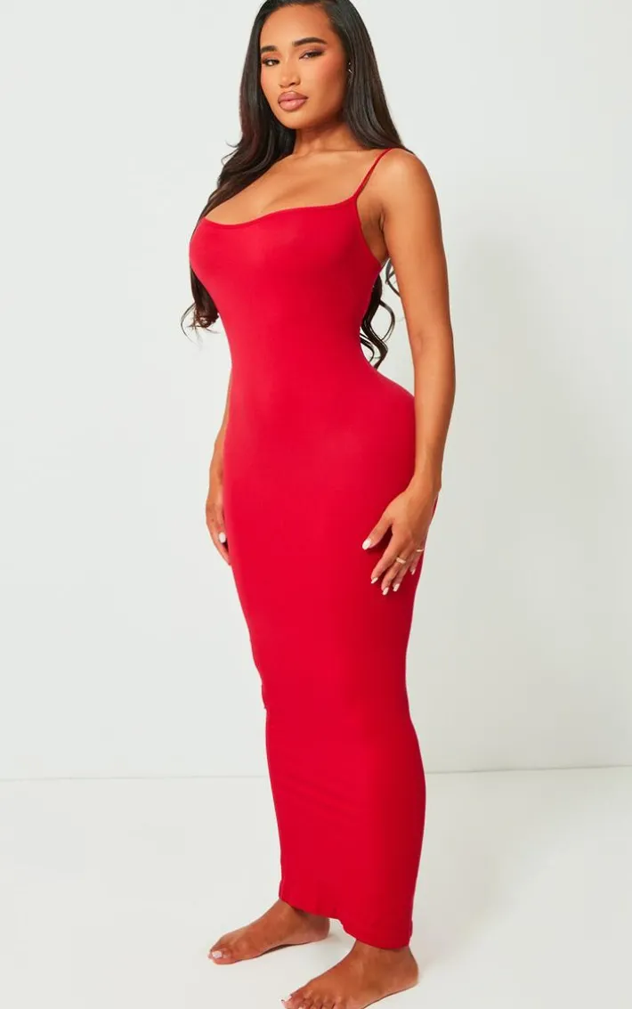 Get your glam on with this shape red stretch seamless strappy maxi dress. Made from a red stretch material with a seamless design youÂ’re sure to have all eyes on you. Its strappy detailing will have you feeling chic. When the weekend calls so does this unreal shape maxi dress. So what are you waiting for? Shop the look and opt for your go-to heels and accessories. ItÂ’s a yes from us.