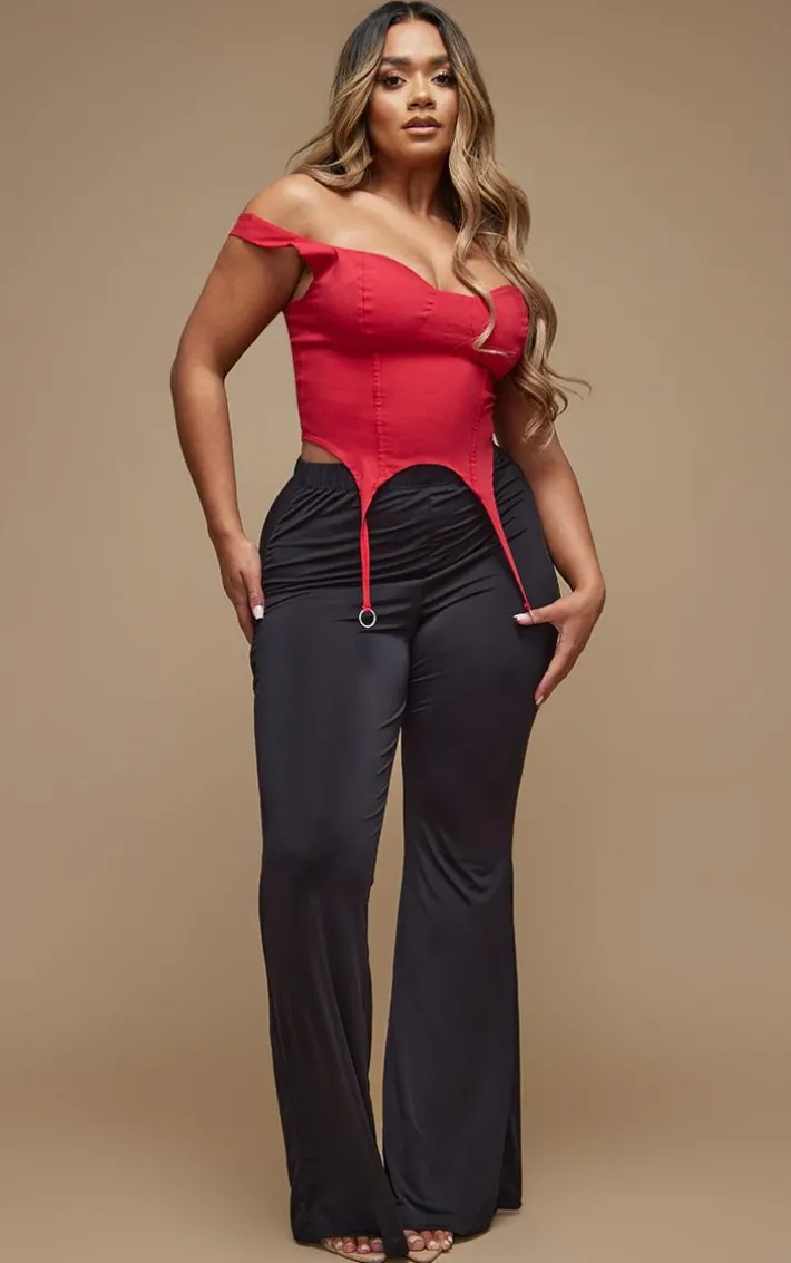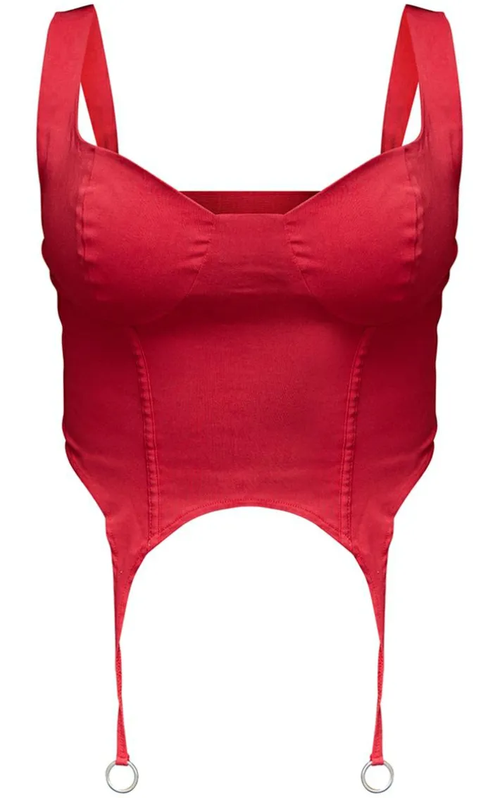 Tap into your feminine side with this shape red stretch woven suspender detail corset top. This corset top is made from a red hue for a statement look you wont be able to resist this season. In a stretch material, you will be showing off your shape in all the right places. Team with some flared black pants and a pair of you fave heels for a look that will make you Center of attention at that next upcoming event.