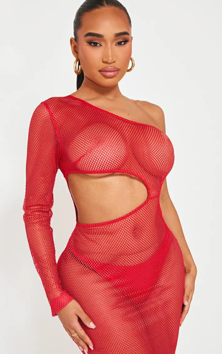 Got a special occasion penciled into your diary? Well, we’ve got you covered with this shape red textured sheer cut out one shoulder maxi dress. Brought to you in a red textured sheer material with a cut out detail, how could you say no? This maxi dress has a one shoulder design that will have you setting trends wherever you step foot. For a flawless finish team this with a pair of clear heels and your fave gold hoops. It’s everything we’re loving right now.