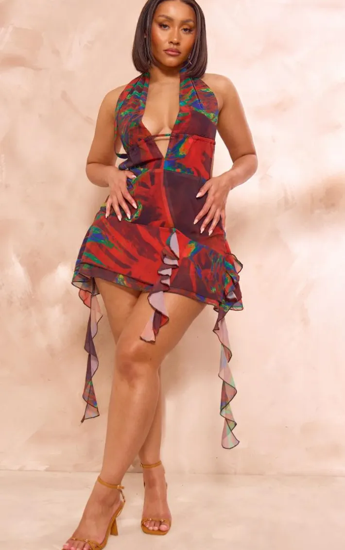Stand out from the crowd in this shape red tropical printed woven extreme plunge dress. Brought to you in a red hue woven material with a tropical print design and an extreme plunging neckline, how can you not be obsessed? Style this shape dress with heels and statement gold accessories for a weekend-worthy look we just can’t get enough of.