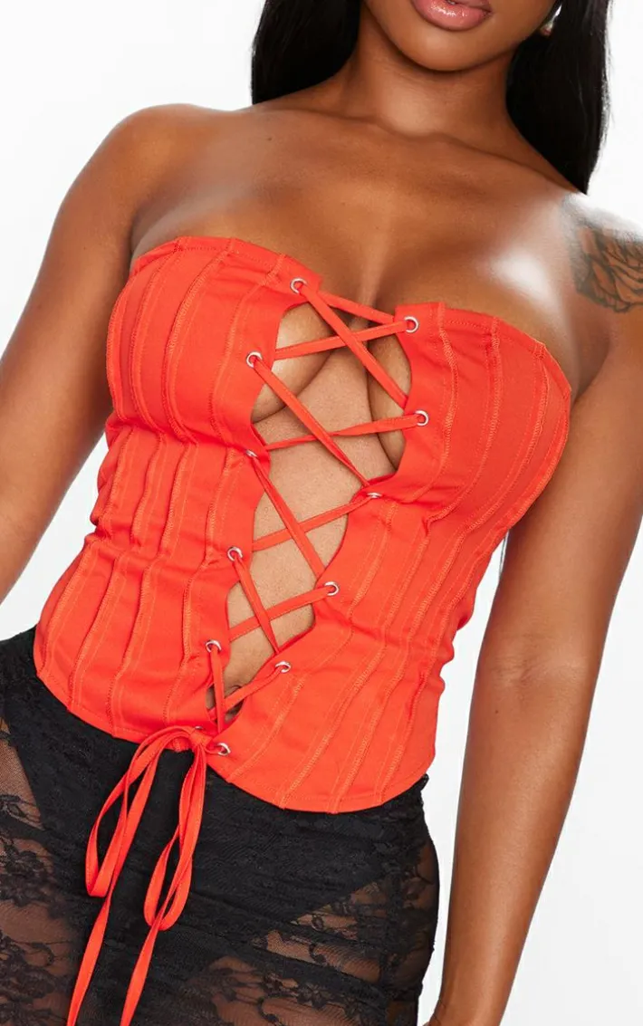 Step into this season in style in this shape red woven seam detail bandeau lace up corset. Brought to you in a red woven material with a seam detail and bandeau neckline, what’s not to love? Pair this lace up corset with a skirt, heels and gold accessories for a combo we’re crushing on.