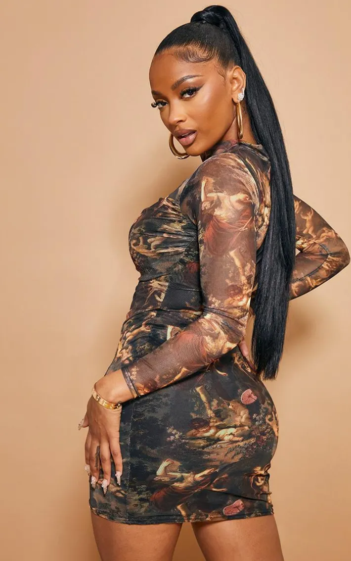 Turn heads this weekend in this fierce dress. Featuring a renaissance print mesh material with a high neckline and a figure-flattering fit, we’re obsessed. Team this with a pair of strappy heels and complete the look with some simple accessories.