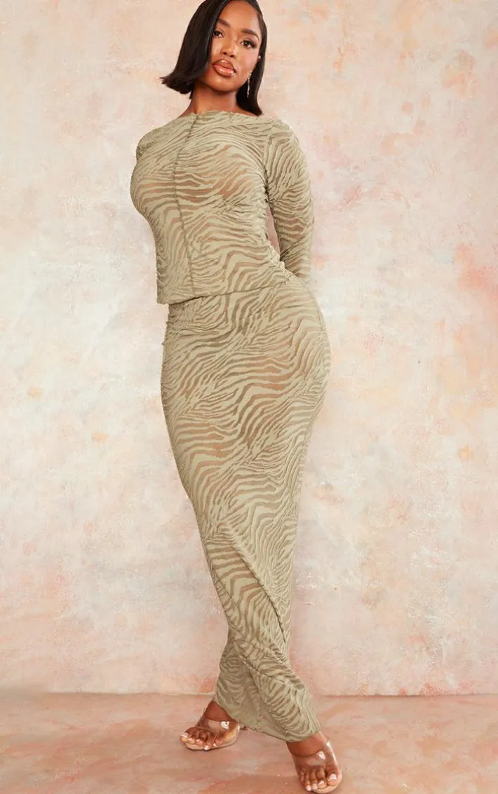 Say hello to your new season staple with this shape sage green flocked mesh long sleeve longline top. Brought to you in a sage green flocked mesh material with a long sleeve design, what more could you want? This longline top will be showing off your shape in all the right places. Style with some mule heels, gold hoops and the matching skirt for a look that has you being the topic of everyone’s conversation.
