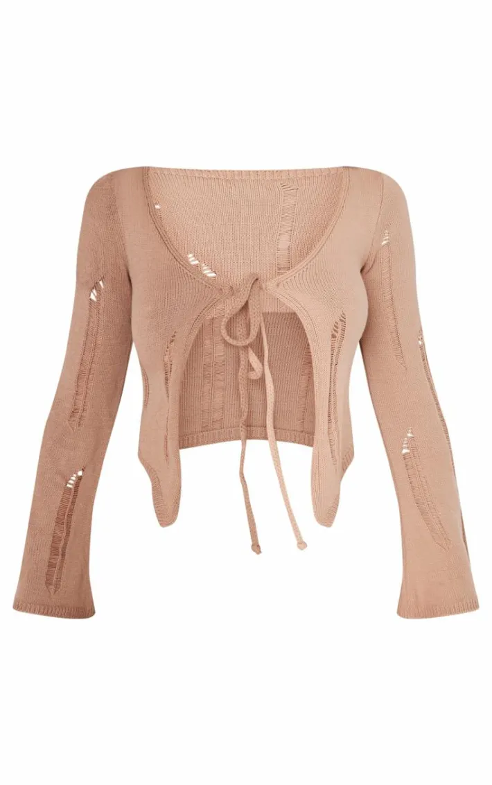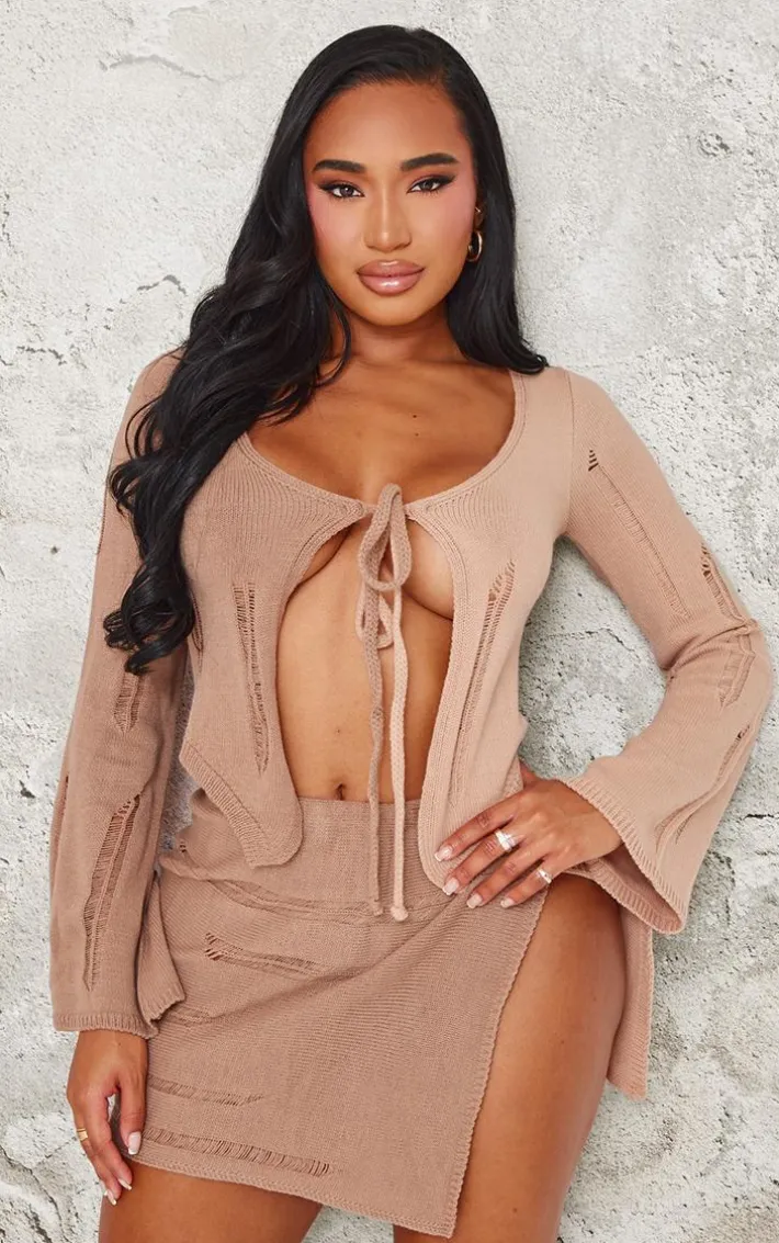 This shape stone contrast knit tie top is sure to bring all the drama to your weekend plans. Made from a stone hue knit material with a contrasting design, long sleeves and tie front detailing, we are obsessed. Style this stone top with the matching skirt, heels and gold accessories for a look that will have all eyes on you.