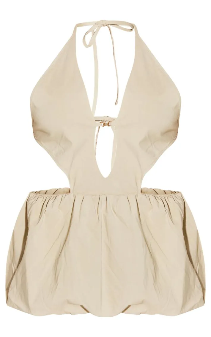 This shape stone halter neck plunge front open back puff ball mini dress will have you looking all kinds of chic at your next event. Brought to you in a stone hue, with a halter neckline, plunge front design and open back detail, what’s not to love? Its puffball style is all the new you need for the season ahead, so style with a pair of heels and gold accessories to make an impact.